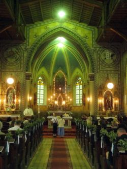 Biserica Catolică Steierdorf, monument istoric de interes naţional, a fost construită în anii 1872-1873, fiind sfinţită în 8 iunie 1873, odată cu sărbătorirea a 100 de ani de existenţă a localităţii Steierdorf. Un an mai târziu au fost sfinţite şi botezate cele trei clopote ale noii biserici romano – catolice din Steierdorf, confecţionate în turnătoria regală a meşterului Ignatz Hilzer din Wienerneustadt.